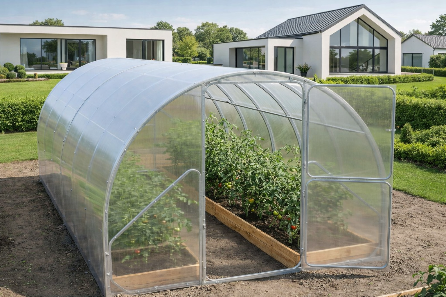 Szklarnia zapewnia idealny mikroklimat, dzięki czemu rośliny rozwijają się szybciej i dają obfitsze plony.